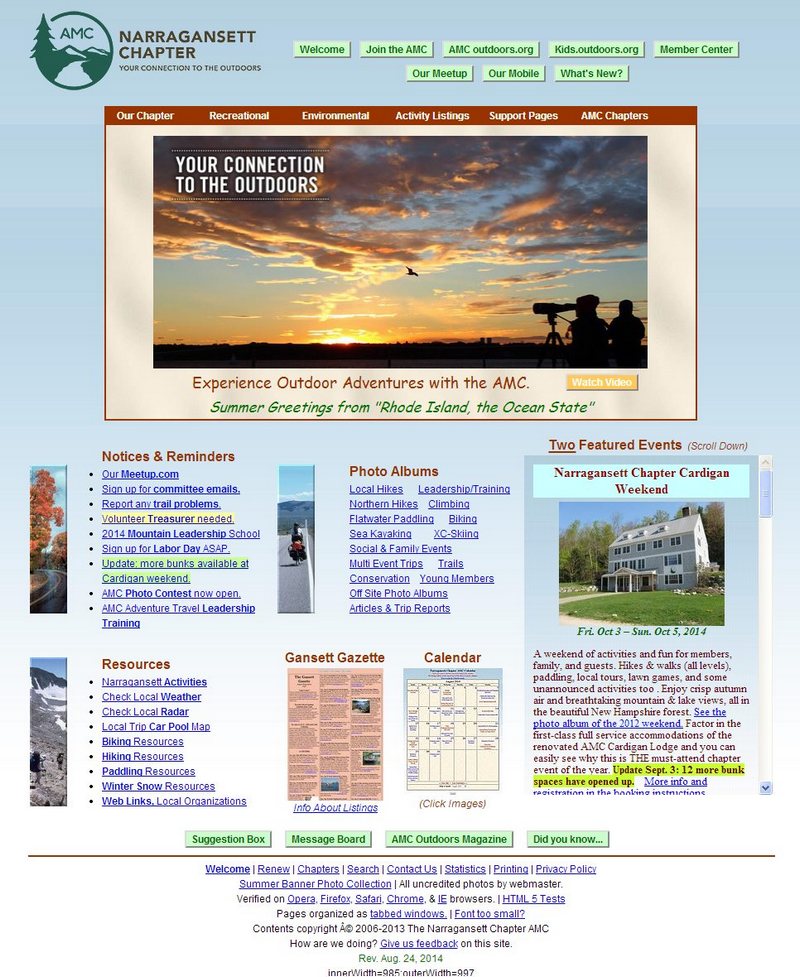 If you have not signed up in the Member Center, you should do so. This will allow you to sign up for various email announcements from the AMC headquarters, notifications of other chapter newsletters, and how you want our newsletter delivered. By default you will receive a mailed copy of the Gansett Gazette newsletter which is mailed every two months. You may opt for email notification only if you wish. The online Gazette is always updated with latest changes and additions to our schedule, and it is recommended that you check the latest schedule on the web.
