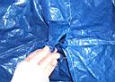 I don't recommend the tunnel vent because it it just too fussy to make. But you need some means of ventilation and some means to regulate it. In my next prototype I will place the vents on the sides of the shelter. If you are sheltered on uneven ground, there will be air ventilation under the shelter walls. And anyone sitting inside can just reach down and lift a portion of the wall up for ventilation. One suggestion for a vent system is to put holes on each side of the shelter so the wind could blow in on one side and out the other. You still want to be able to shut the vents and have them close during rain.