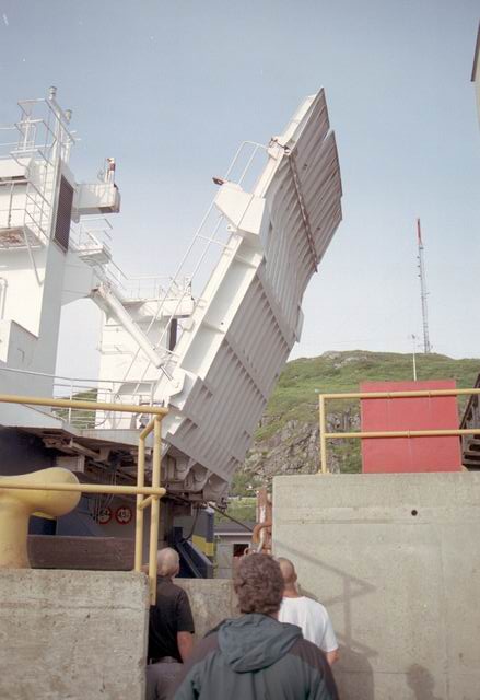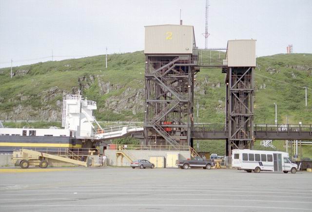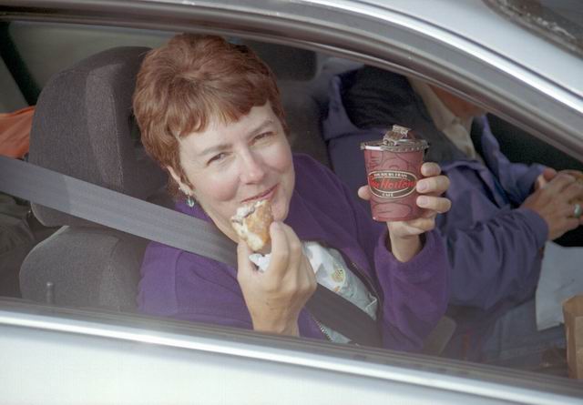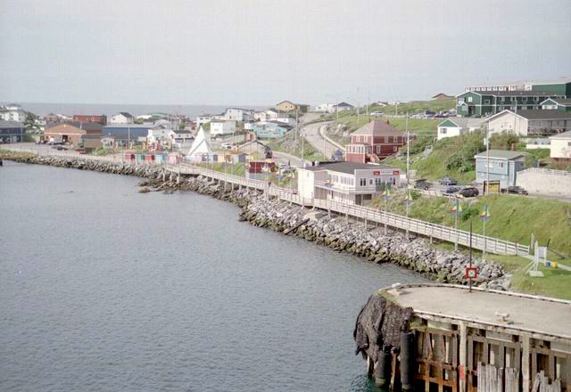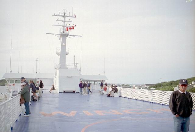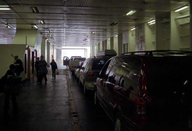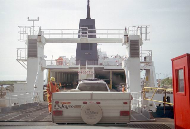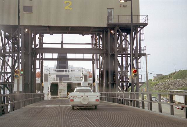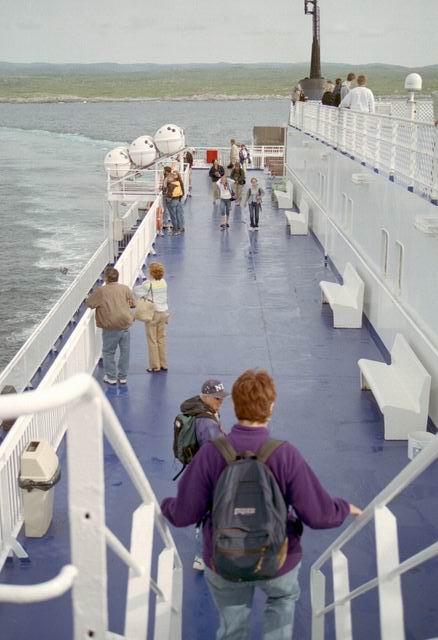 Up early in the morning to catch the ferry to North Sydney. But first we had to stop at Tim Hortons for coffee and a fritter. The next photos show the ferry backing into the loading gantry. We drove onboard and after viewing the town from deck settled into the lunch room for breakfast. When we arrived in North Sydney the weather had deteriorated to a light rain, the first we had seen since the first evening in Gros Morne Park.